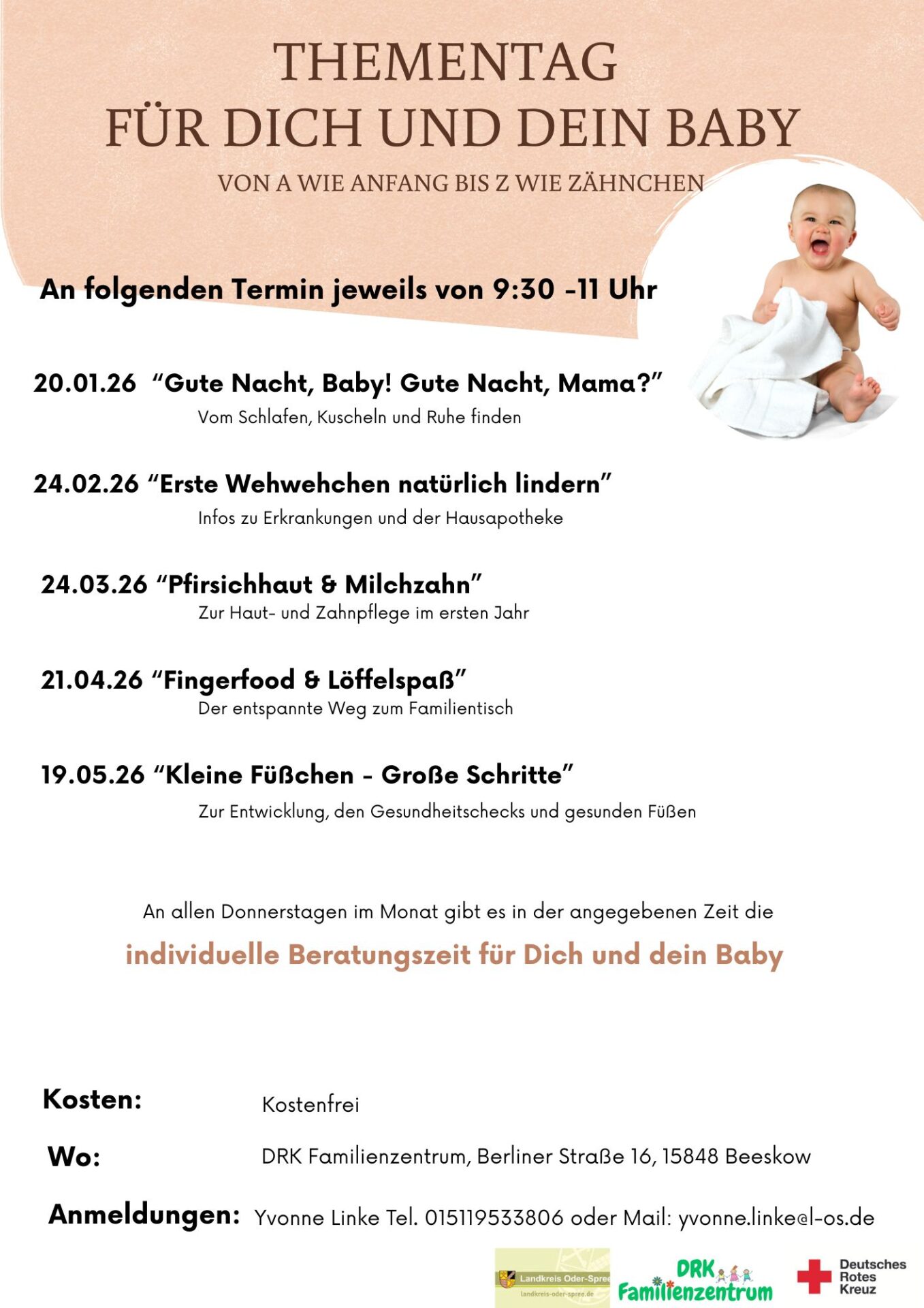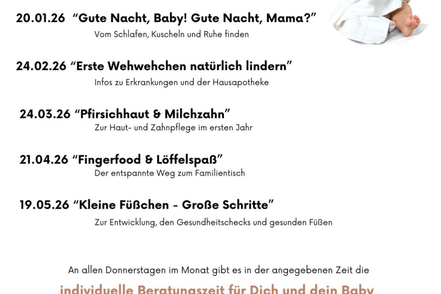 An allen Donnerstagen im Monat gibt es in der angegebenen Zeit die individuelle Beratungszeit für Dich und Dein Baby